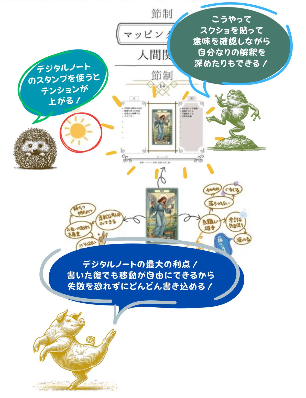 ・マッピングページで、インスピレーションや連想を整理しやすい