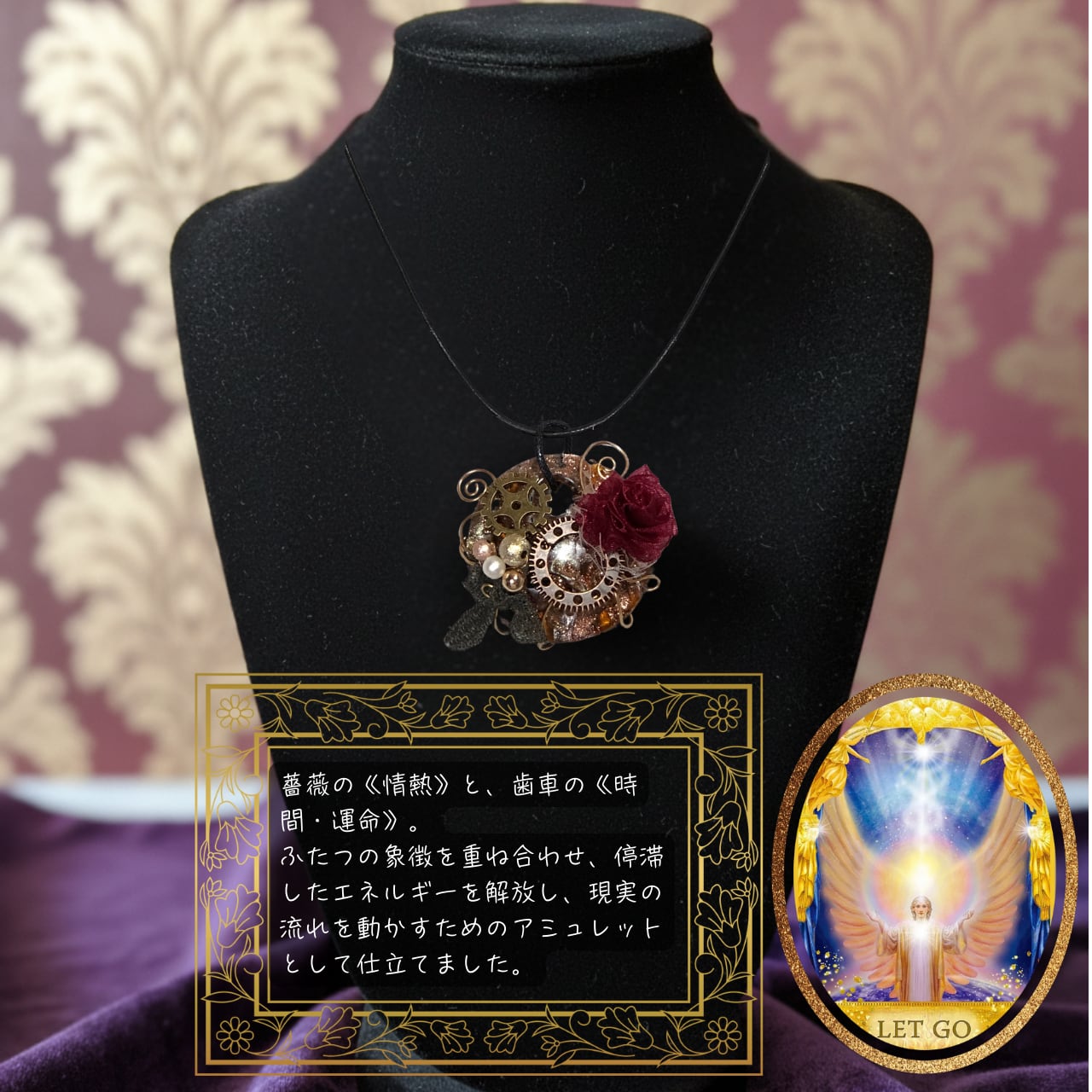 情熱の再点火 運命の歯車を動かすアミュレット〜停滞から抜け出す歯車と薔薇のネックレス〜【オラクル鑑定特典つき】